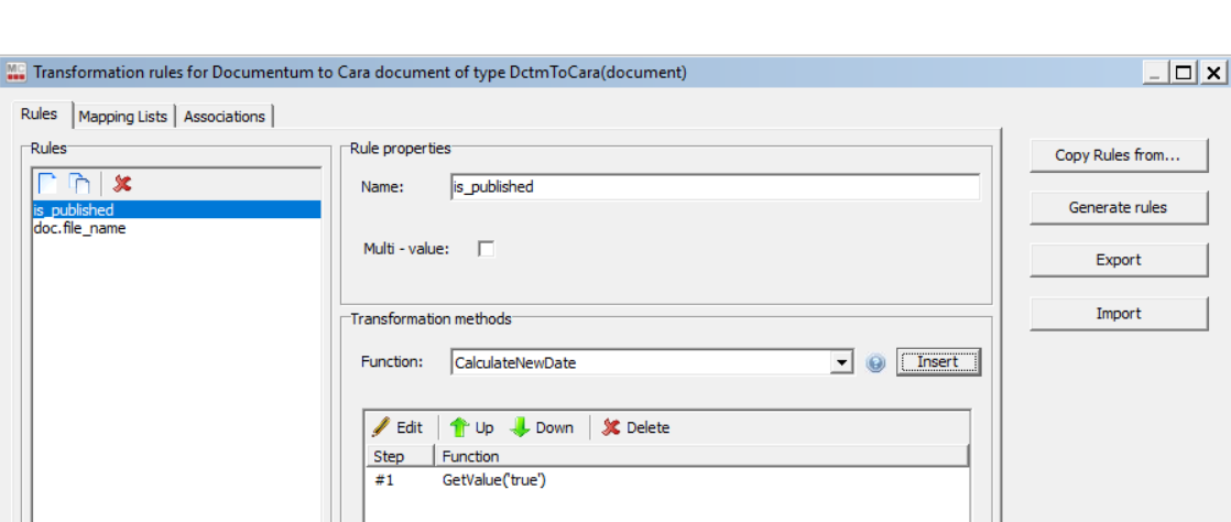 For more details on transformation rules and associations, please see the Client User Guide.