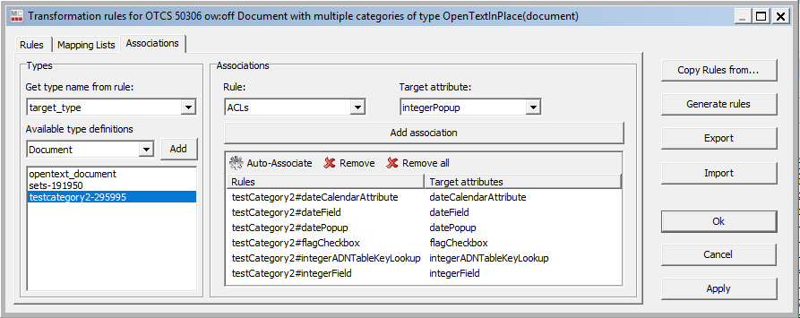 For setting the category attributes the rules must be associated with the category attributes in the migration set’s |Associations| tab: