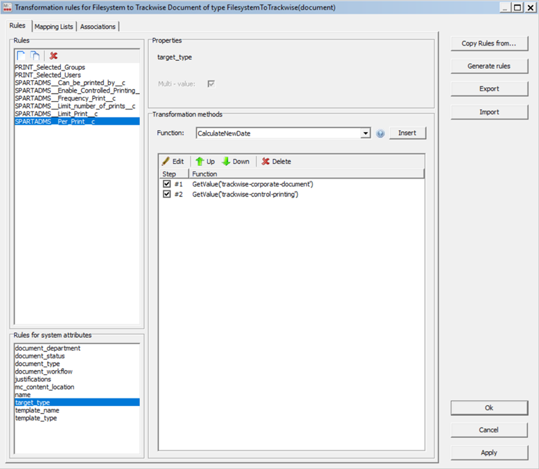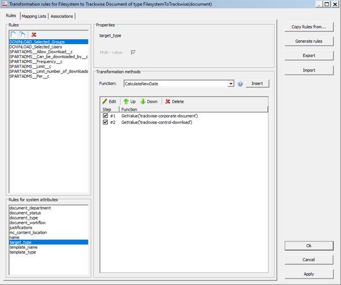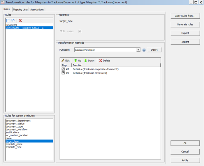 The final step is to associate the regular transformation rule with the defined target type attribute.