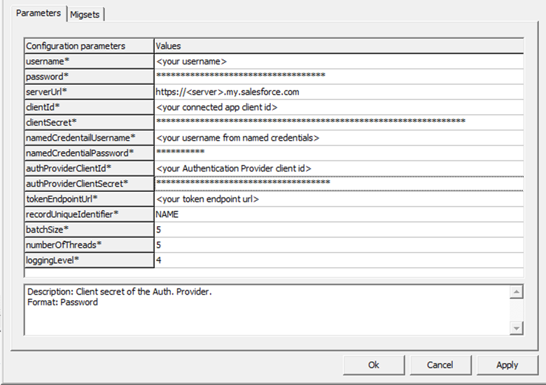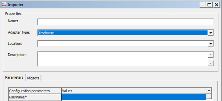 An importer of type TrackWise has the following parameters, which you need to set with the appropriate values.