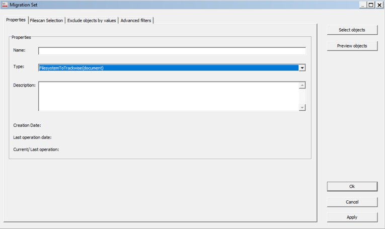 In order to import documents, you need to create a migration set with a processing type of “<Source>ToTrackwise(document)” as shown in the screenshot below: