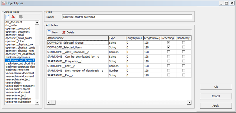 To set those attributes you need to use the “trackwise-control-download” object type which can be found if you access the Manage ->Object Types option.