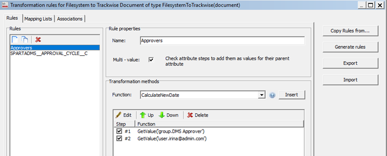 First, you need to define two regular transformation rules, one for approvers names and one for approve cycles.