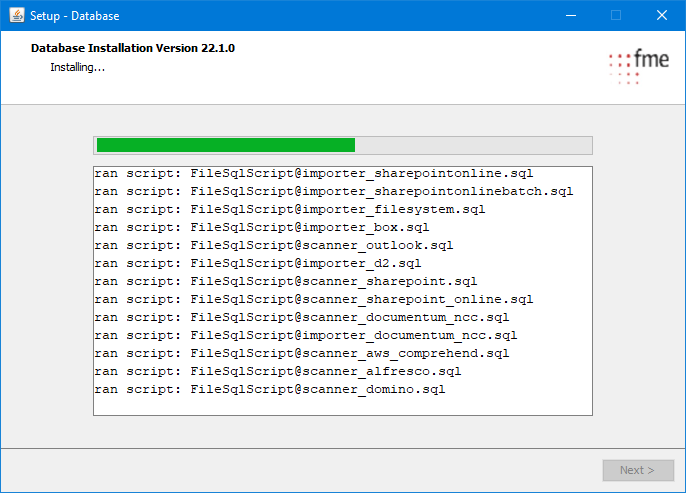 The installer prepares the database for use with migration-center by creating a user, tables, installing the packages containing migration-center functionality and setting default configuration options. All of these objects will be created in a schema called FMEMC. Currently it is not possible to change the schema’s name or install multiple schemas on the same database instance.