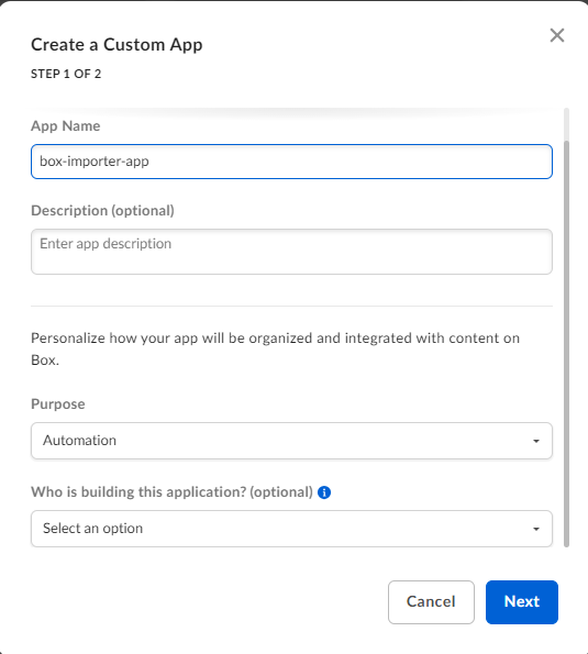 In order to create a Box Application that can be used with Migration-Center Box Importer, please follow the steps: