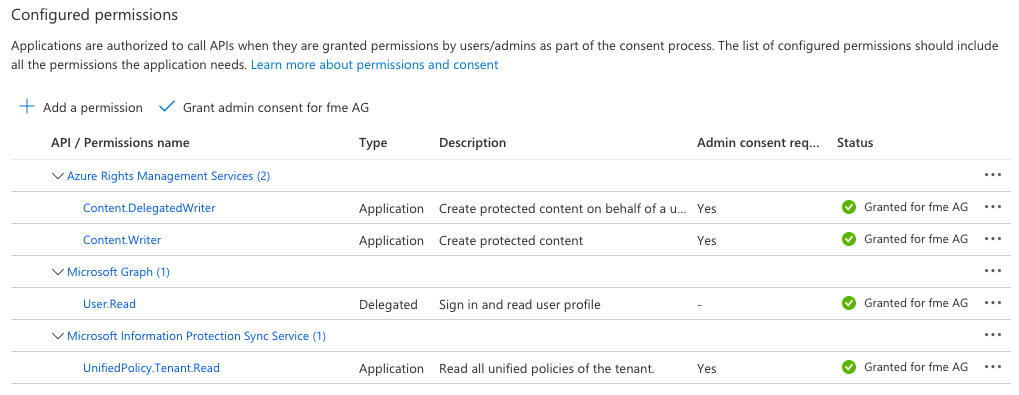 Click on the blue "Add permissions" button at the bottom to add the permissions to your application. The "Application permissions" are those granted to the migration-center application when running as App Only.