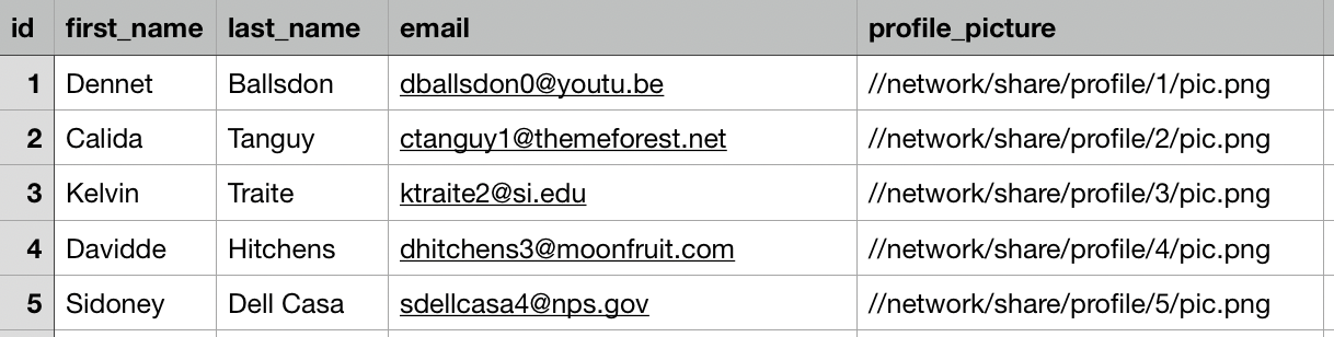 If your source file contained a column with a file path, as seen in the next screenshot, you can enter that column name (“profile_picture” in the example) in the “contentPathColumn” in order to scan that content file along with the metadata of the object.