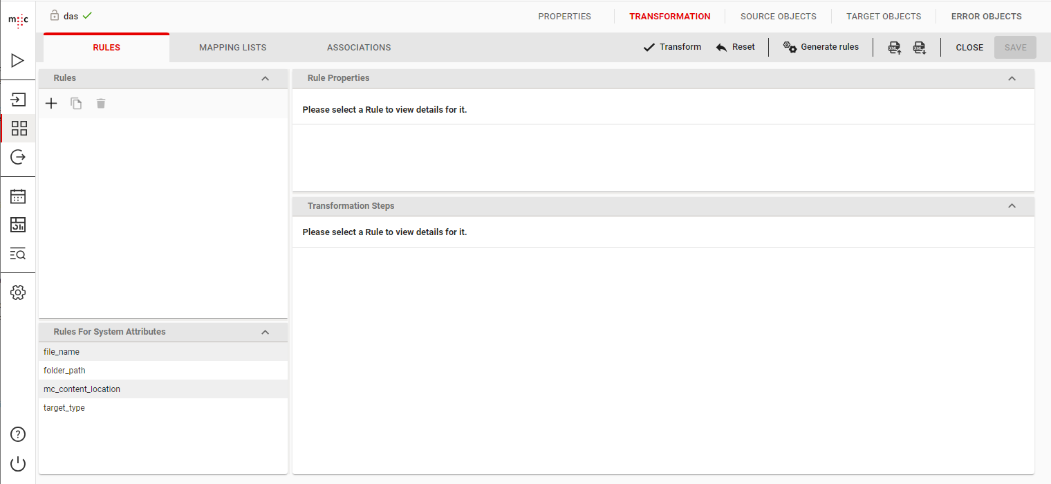 As with other target systems, migration-center objects targeted at box have some predefined system rules available in Transformation Rules. For box, these are “file_name”, “folder_path”, "mc_content_location" and “target_type”. Additional transformation rules for other box document attributes can of course be defined by the user.