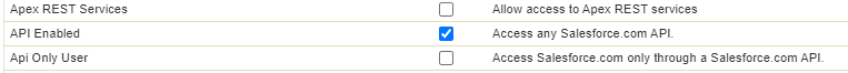 The user used to migrate the data must have the API Enabled permission and to enable this permission the following steps are necessary: