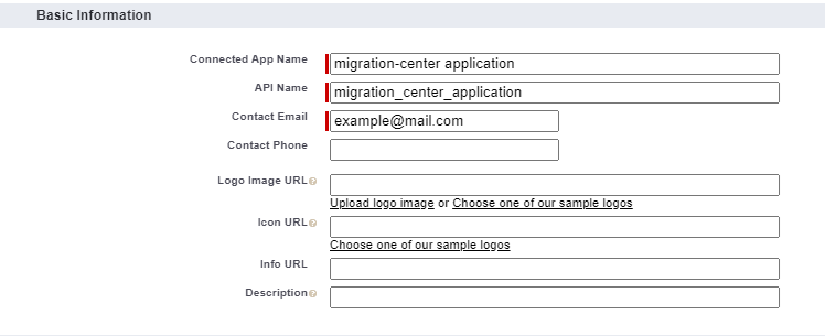 Fill the connected app’s name with a unique name on your organization.