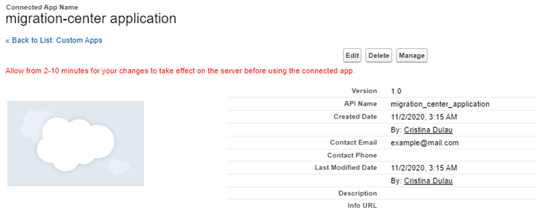 Click Manage from the created Connected App page to open the Connected App Detail page.