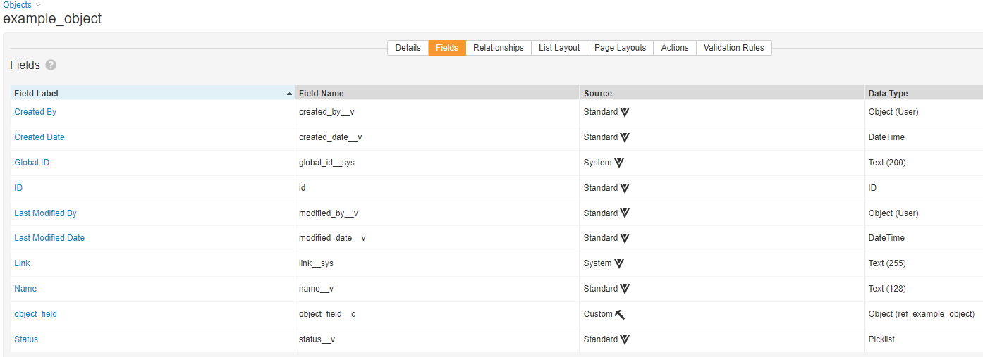 Vault Objects are part of the application data model in Veeva Vault. Vault Objects are usually configured to be referenced in the document fields. For example, the Product document field corresponds to the Product object and is associated with all document types.