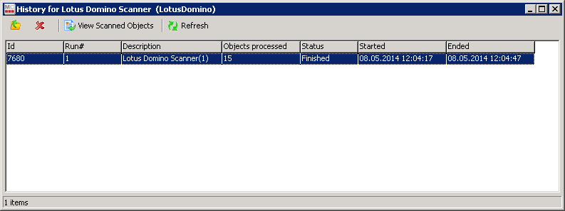 Scanner is the term used in migration-center for an input connector. Using the IBM Domino scanner module to read the data that needs processing into migration-center is the first step in a migration project, thus “scan” also refers to the process used to input data to migration-center.