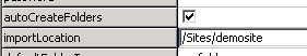 | importLocation               | <p>The path inside the target repository where objects are to be imported. It must be a valid Alfresco path and have to start below the “company\_home”-node inside the spacesStore.</p><p>Examples for valid values of importLocation:</p><ul><li>“/sites/demosite/documentLibrary/” for import into the document library of a share site with internal name demosite</li><li>“/demofolder” for import a folder with name demofolder below the company home folder.</li></ul><p>This path will be appended in front of each folder value (for documents and folders) before creating parent-child association for this object if both the importLocation parameter and the folder attribute values are set.</p><p>If the attributes mentioned previously already contain a full path, the importLocation parameter does not need to be filled.</p><p>Examples:</p><ul><li>importLocation = ”sites/demosite/documentLibrary/” and folder for documents “/test” = complete path “/sites/demosite/documentLibrary/test”</li></ul> |