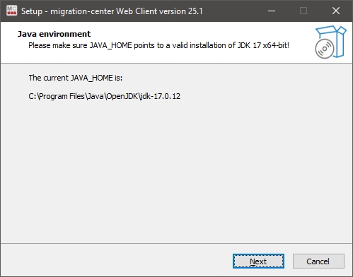Compact Installation This variant installs the migration-center WebClient and database only.