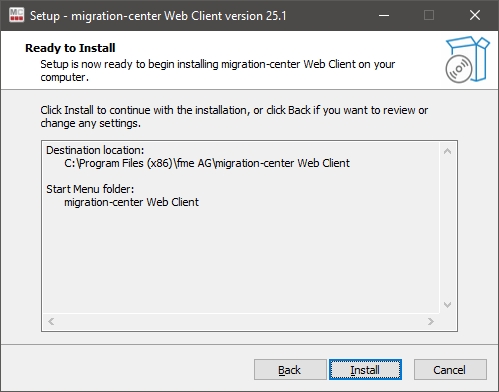 The Windows Start Menu shortcuts will be created for migration-center WebClient. The name of the folder for these shortcuts can be set here.