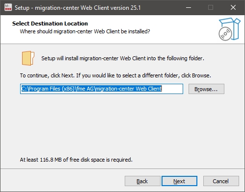 Select the installation path for the application. The default installation path proposed by the installer is recommended but can be changed if needed.