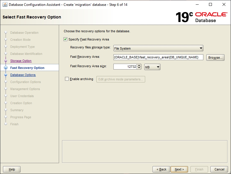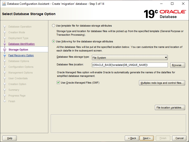 For use with migration-center the “File System” option is sufficient. For more information on the “ASM” method, please refer to the Oracle documentation.