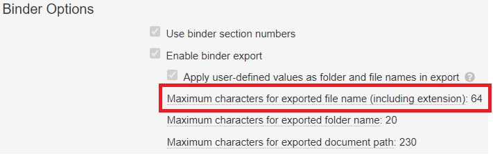 [Type: MALFORMED_URL, Message: The specified item [/example/path/submissionArchive.zip] cannot be found]To solve this please remove the following restriction or increase it: "Maximum characters for exported file name (including extension)":