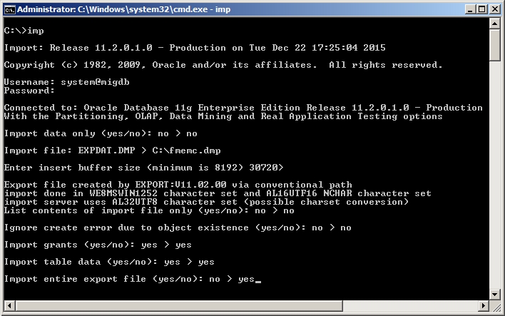 Make sure no connections with the user FMEMC exist, otherwise the scripts will fail to execute properly. Should this happen, the scripts can be re-run after closing all connections of the user.