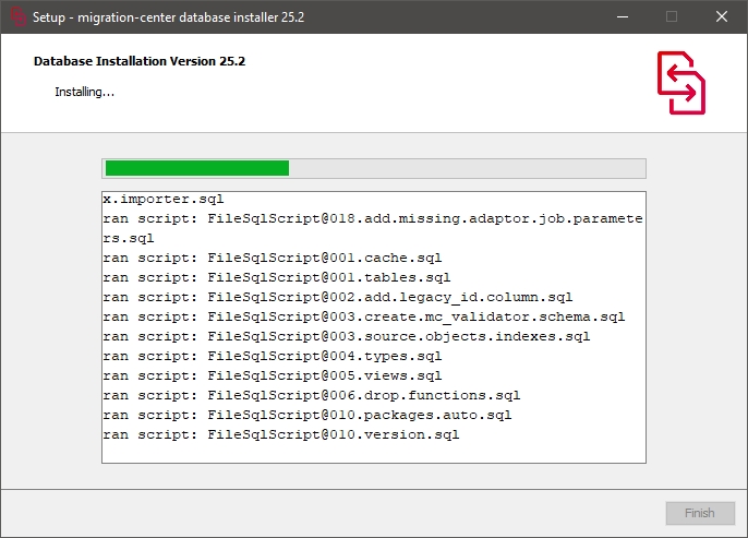Documentation: added new document “migration-center Database Administrator’s Guide” detailing database installation requirements (privileges, packages, etc.) and procedures for deploying mc in environments where the regular database setup cannot be run, and the database must be prepared manually by a DBA for installing the mc schema